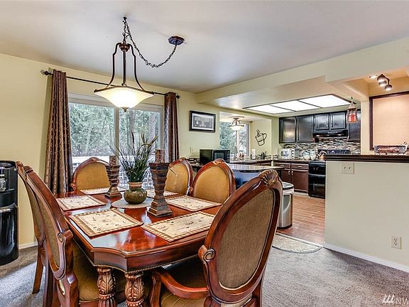 Attractive almost 1/2 acre setting. Discover inviting living spaces, tasteful finishes, newer carpet and windows. Fresh kitchen offers eating bar, dbl ovens. Master has own bath, deck access; two addtl bdrms, full guest bath on main. Lower level: Generous family rm, floor-to-ceiling frplc, room for pool table, plumbed for wet bar; fourth bdrm, third full bath (possible guest qtrs). Relax or BBQ on deck overlooking secluded wooded yard, raised gardens, greenery. Minutes to numerous amenities.