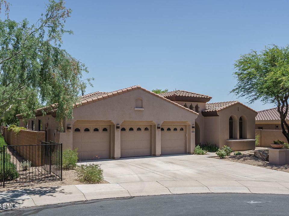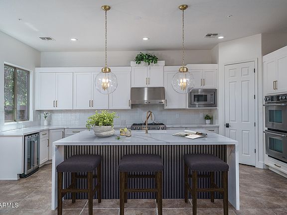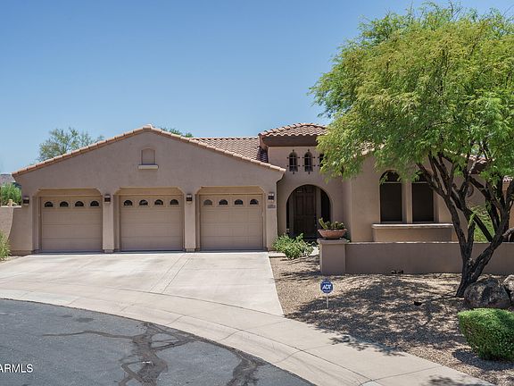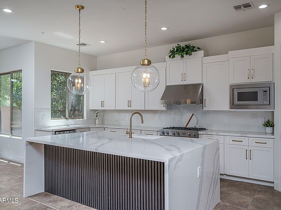 Welcome to your dream home! This stunning home features exquisite design with an expanded primary suite offering 2 spacious walk in closets, dual separate sinks, separate jetted tub & updated tiled shower topped off with private fireplace! Enjoy a modern kitchen with expanded island with single basin sink, quartz counters, Sub Zero refrigerator, generous walk in pantry, upgraded 5 burner gas cooktop & double ovens! Secondary en-suite with its own private full bath & walk in closet! Inviting courtyard, complete with a fireplace, enhances outdoor living while attractive, low maintenance backyard features in ground spa with private grotto plus water feature, fire pit & built in Bar-B-Q! Experience elegance with 12 ft ceilings & coffered ceiling! New HVAC's in 2023! Wonderful gated community! Featuring walking trails, community pool & clubhouse, basketball court, tot lots thru out, close proximity to schools! Surrounded by mountains and convenient to both 101 & 303 freeways, restaurants, shopping, TSMC and more! Make this HOME today!