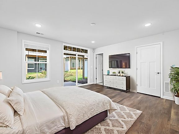 Welcome to this stunning four-bedroom, three-and-a-half-bath end-unit townhome, filled with natural light and breathtaking mountain views. The first floor features one of two primary bedrooms with a walk in closet, ensuite bath and patio access. Sleek LVP floors and an open-concept layout make living and entertaining effortless. The gourmet kitchen boasts a large eat-in island, pendant lighting, recessed lights, and stainless steel appliances, flowing into the dining area and living room with a private deck. Upstairs, the second primary suite offers a spa-like bath and walk-in closet, while additional bedrooms provide comfort and versatility. The fourth-floor loft is a retreat with a balcony overlooking Carter and Brown Mountains and Fourth of July fireworks. Enjoy a one-car garage, driveway, and guest parking. Conveniently located adjacent to the fitness center and tot lot. Enjoy a friendly neighborhood with community events throughout the year. Perfectly located just minutes from downtown Charlottesville, the pedestrian mall, and the shops and restaurants at 5th Street Station.