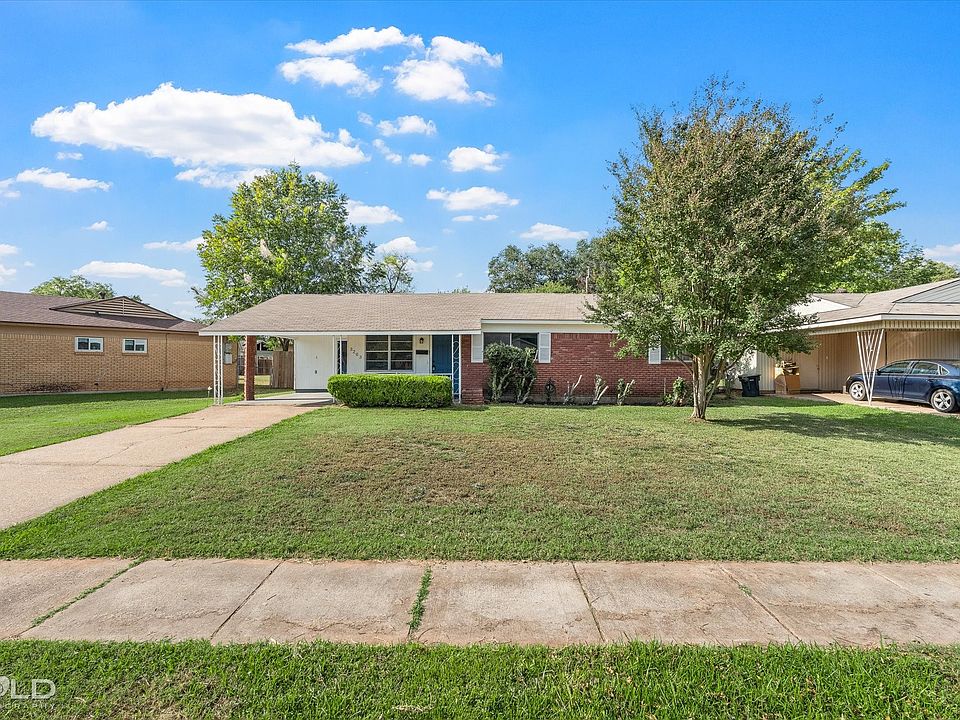 Spacious home featuring a large living area with a brick fireplace and built-ins. The kitchen offers stainless steel appliances, white cabinetry, and plenty of counter space. Enjoy time outdoors under the covered patio with a ceiling fan and built-in grill. The fenced backyard provides privacy and room to relax or entertain. Convenient layout and neutral finishes make this home move-in ready.
