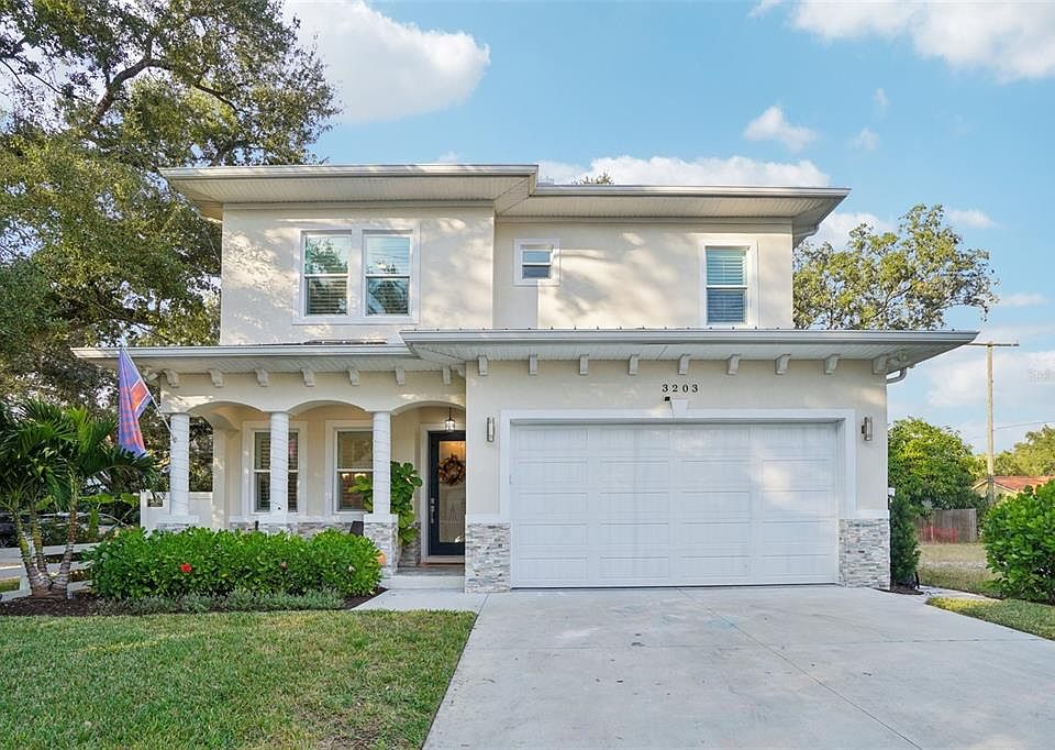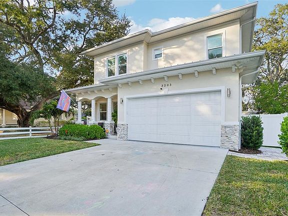 Welcome to this Bayshore Beautiful nearly new home on a lovely tree lined street steps from Bayshore Blvd. Step into the foyer onto the warm and inviting bleached "wood" tile flooring which is found throughout the entire home including the bedrooms. Off to your left is the formal dining room with a custom millwork accent wall then into the kitchen with wood shaker cabinetry, quartz countertops, an island with a waterfall edge, custom backsplash, and stainless steel appliances with an induction range. The kitchen overlooks the family room with crown molding and a tray ceiling which also opens to the large lanai and custom built backyard patio with pavers, low maintenance turf, and a clusia hedge. The first floor also features a powder bath for your guests and the 4th bedroom with a private full bathroom. Upstairs features 3 more bedrooms + a den and an oversized laundry room. The primary suite is very spacious and features a tray ceiling and a primary bathroom with double sinks, a floating tub and an walk-in shower. Other upgrades include a security system with cameras and additional loft storage in the 2 car garage. Truly a wonderful home!