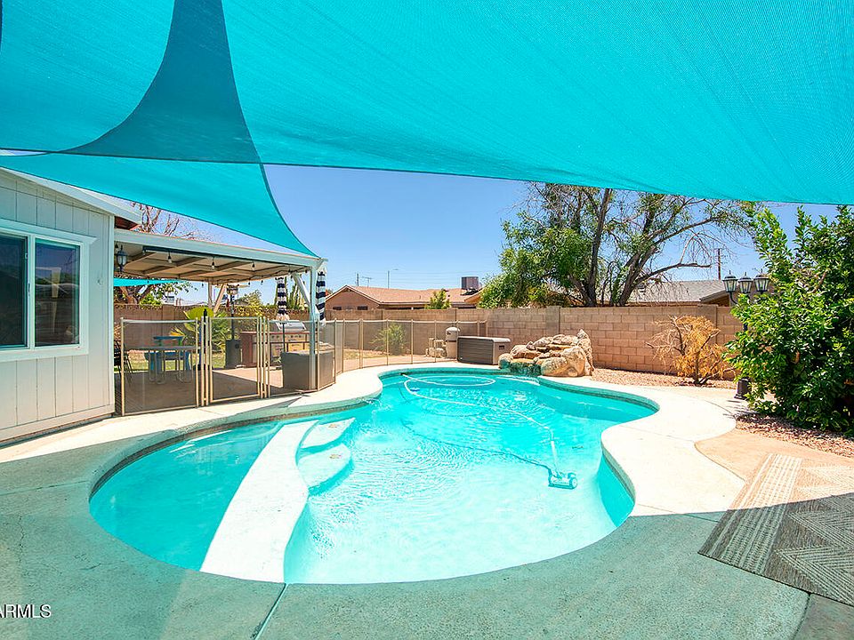 UNICORN ALERT! Whoa! They do exist! MOTIVATED SANE SELLER WHO WANTS TO SELL! This awesome 3 bedroom home with a large den/playroom is open and bright with just over 1800 square feet and a PERFECT BACKYARD! Grass, large covered patio plus a COOL POOL! It may be hot in Phoenix, but you will be entertaining and chilling poolside in no time! Fantastic open kitchen with granite counters overlooking the family room and bonus room. Dual pane windows too! Check out the primary bedroom, it is massive and has a great built out walk in closet. The elementary school is just down the street plus great shopping, restaurants and easy freeway access. This one is super cute and a fantastic neighborhood. Come see it before it disappears!