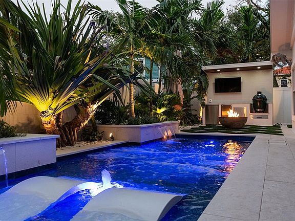 Experience the best of South Tampa living in this stunning custom Palma Ceia home, where timeless design, quality craftsmanship, and effortless indoor-outdoor living come together. Thoughtfully updated and meticulously maintained by the owners, this home reflects comfort, care, and pride of ownership throughout. From the inviting front porch to the resort-style backyard, every space is designed for relaxation and connection. Enjoy quiet evenings under the palms or host unforgettable gatherings in your private outdoor oasis. Inside, the open kitchen features new Cambria quartz countertops, a breakfast bar, stainless steel appliances, a gas cooktop, and abundant custom cabinetry. Throughout the home, you will find new engineered hardwood floors, plantation shutters on every window, crown molding, and a dedicated laundry room, all combining luxury with everyday ease. The show stopping backyard, professionally designed and completed in 2024 by Landscape Fusion, is a true retreat surrounded by lush tropical landscaping and built for year round entertaining. Both sides of the fenced in yard are turfed, creating a beautiful, low maintenance setting ideal for kids and pets. Highlights include a heated saltwater pool with massage jets, an outdoor kitchen with Big Green Egg, multiple televisions, and a gas fire pit. The first floor primary suite offers exceptional comfort and accessibility, while a second bedroom on the same level provides added flexibility for guests or office use. Upstairs, there are two additional bedrooms and a versatile loft area, ideal for a home office, playroom, or media space. Additional features include an attached garage, tankless gas water heater, paver driveway, home water softener, reverse-osmosis water filter system, and security cameras. Located in the highly desirable Palma Ceia neighborhood, this home is within walking distance to Roosevelt Elementary and in the Plant High School district. Built with solid block construction and situated in Flood Zone X, it has experienced absolutely no flood or hurricane damage. Enjoy close proximity to Bayshore Boulevard, top-rated restaurants, and boutique shopping. Elegant, inviting, and move-in ready, this custom home perfectly captures the essence of Tampa living.