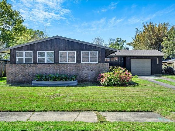 Inside: The home is full of sunlight and an overall colorful, airy feel and look. The kitchen features the original/vintage, sliding door, Tambour cabinets, and bathroom has all the MCM original tile and fixtures. This precious gem was even featured twice in articles on MCM homes in the Times Picayune (see photos of newspaper articleS!). The owners have maintained all of the original architecture features, while making critical upgrades including a new roof (2022), new flooring (bamboo 2024), and a new HVAC (2024). Easy access and simple commute in that it's a block off of Causeway but you'd never know it as it feels quiet and private with its large backyard waiting for your own special touches.