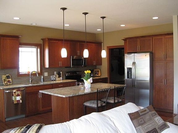 You'll feel right at home as soon as you enter this five bedroom, three bath Pheasant Hollow ranch. Open design lends itself to multiple lifestyles. Must see upgrades include hickory flooring, ceramic tile, cherry kitchen cabinets featuring slide-out trays and self closing hinges, granite tops, stainless steel appliances, tile backsplash, drop zone with cubby storage, brick/stone gas log fireplace, 3 panel solid doors, owner suite with walkin closet and private bath. Open stairway leads to the lower level featuring an enormous family room, two additional basement bedrooms or one bedroom and a flex room, third bath and ample storage. the yard has been professionally sodded and landscaped. 12 x 14 composite deck. Anderson casement windows.