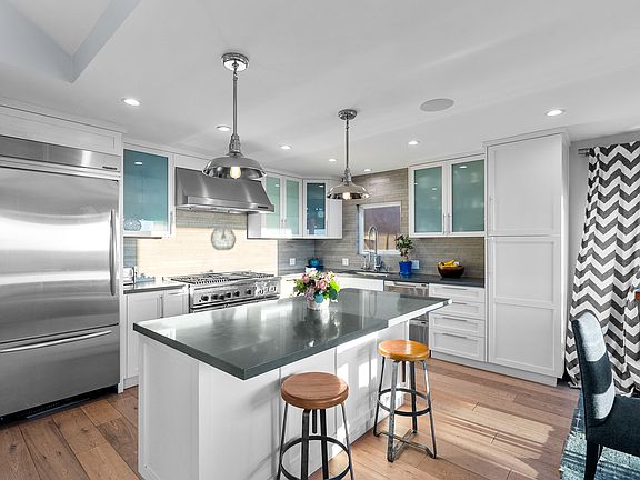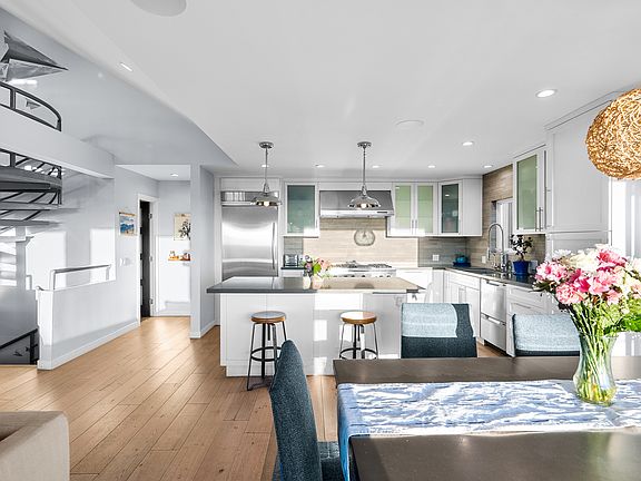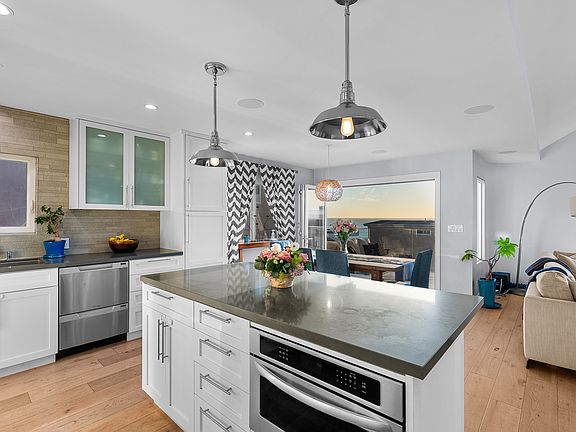 Walk to the beach in under five minutes from this recently remodeled townhome. The property offers ocean views from every part of the house and balconies, where you can watch the sunset each night. The home is steps from North Manhattan restaurants, yoga studios, market, etc., and just under a mile from Downtown Manhattan Beach. Two bedrooms each with their own attached bathrooms are located on the entry level, while upstairs is the living room, dining room, kitchen, and half bath. Up the stairs further to the loft is the perfect space for an office. A two-car garage plus two spaces in front provide four convenient parking spaces, and a carport allows for additional parking of bikes or a golf cart. The spacious master bedroom contains a walk-in closet and plenty of space for a king-size bed. The fireplace provides extra warmth in the living room, and the kitchen contains double ovens, six burners plus a grill, and two dishwashers. You can find plenty of storage in the coat closet, linen closet, and garage. Lease term of one-year. Comes unfurnished.