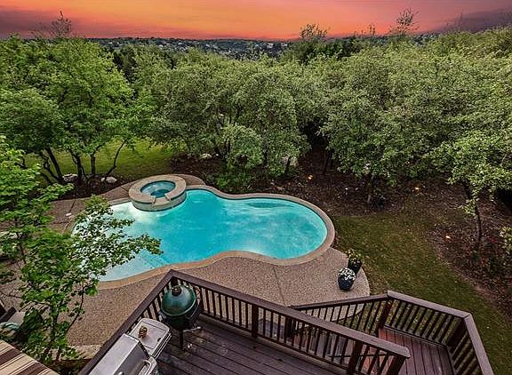 Pristine home located in popular Estates at Westridge. New roof, new carpet and new paint make this an unbelievable deal! 5 Bedroom, 4.5 bath with office + sun room + bonus. Gorgeous backyard with pool and spa, mature live oaks and plenty of level grass to play or practice your putts! Covered balcony w/ peekaboo views of Lake Austin and fab sunsets from 2nd floor. Walk out to covered deck w/ remote awning and enjoy huge patio and pool area. 3 car garage, Floor-to-ceiling built-ins in office; too much to list!