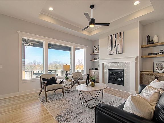 Available now! The award-winning Reverse 1.5 Story – The Fairfield! 1 of only 4 homes remaining at this New Longview community! Spacious and open with loads of natural light throughout. 4 bedroom/3 bath with main level Primary Suite and 2nd bedroom/home office. Enjoy the finished lower with large open rec room, 2 bedrooms + full bath. You will love the views out the massive picture windows in the great room! Extensive Designer options and neutral colors everywhere. Kitchen features 9' tall custom cabinets, an oversized island & walk-in pantry. Tons of prep space on the endless Quartz countertops! The Great Room features custom built-in cabinets with floating shelves and a floor-to-ceiling stone fireplace. The primary bathroom includes more built-in cabinets and a large walk-in closet connecting to the laundry room. Well thought out extras included such as: Upgraded trim package throughout, quartz counters throughout, irrigation system and garage door openers already installed! **Enjoy all of the NEW LONGVIEW amenities—Pool w/Cabana, Playground, Walking Trails, Trash & Recycling. Walk to coffee shop, dining, shopping, and the B&B Theater! Quick access to Longview Lake, golf, and major highways. Top Rated Lee’s Summit Schools—Longview Farms Elementary, Pleasant Lea Middle and Lee’s Summit West High. BUY WITH PEACE OF MIND. The convenience of new construction with locked-in pricing and backed by a 2-10 Home Warranty, offering 10-year structural, 2-year systems, and 1-year workmanship.**