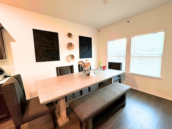 Dining spaceHuge backyardDeep covered patioStainless steel appliancesBuilt-in shelvesLarge master bedroomVinyl luxury flooring