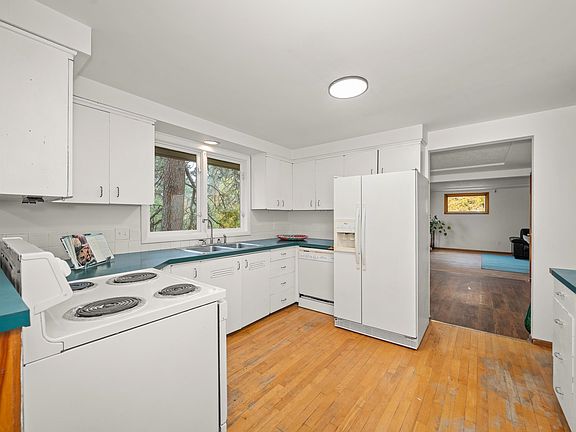 Corner View lot in desirable West Hills neighborhood! This solid mid century daylight walkout rancher features large picture windows for sunrise views through the surrounding trees. Main level has a large living room with wood burning fireplace, formal dining room & spacious kitchen with breakfast bar & eating nook. Original cabinets are solid wood construction with good storage & counter space. 2 main floor bedrooms with carpet over the original wood floors. Main floor bathroom features tub/shower combo and beadboard wainscotting. Double linen closets in the hallway plus coat closet & pantry. Deck off kitchen with views into the backyard. Basement is finished with 2 egress bedrooms both with built in dresser storage. Large family room with gas fireplace. Laundry/mud room off garage. Gas forced air heating. Under house garage with built in storage shelving. Storage Shed. Quiet low traffic location with easy access to downtown, airport and west plains.