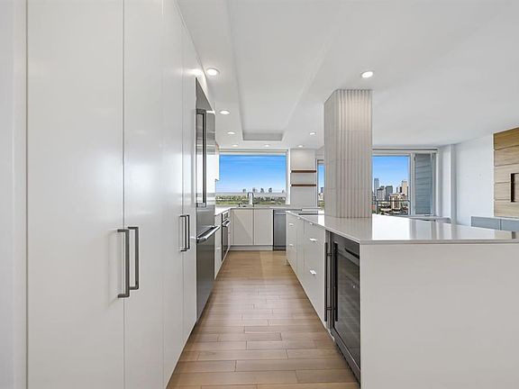 Uninterrupted panoramic views of Calgary’s downtown skyline define this recently renovated two-bedroom, one-bathroom end unit on the 6th floor of the renowned Renfrew House. Renovated in 2016, the transformation went far beyond aesthetics. The unit was completely rebuilt to modern standards with new windows, electrical wiring and panel, updated plumbing lines, enhanced soundproofing, and hardwired CAT 6e networking throughout for seamless connectivity. Inside, mid-century modern design meets contemporary sophistication. Commercial-grade Coswick hardwood floors, dimmable LED lighting with designer fixtures, and Lutron controls create a polished ambiance, while unique touches—like the restored original milk delivery door and custom quartz-topped radiator covers—preserve timeless character. The kitchen is a culinary showpiece, boasting built-in Thermador and Bosch appliances including an induction cooktop, custom soft-close cabinetry, and a striking Italian chevron Mutina stone backsplash lit by LED under-cabinet lighting. A built-in electric fireplace enhances the dining area, while the living room is anchored by a walnut-paneled TV feature wall framed by sweeping city views. Custom closet systems maximize storage throughout, while the spa-inspired bathroom offers a walnut vanity, quartz counters, Grohe and Kohler fixtures, and a dedicated makeup station. The primary bedroom provides elegant, functional closet solutions, and the spacious second bedroom is perfect for guests or a home office. The home includes underground parking and a storage unit, all within 13 acres of park-like grounds atop the hill—an unmatched setting combining green space, privacy, and city convenience. Book your private showing today.