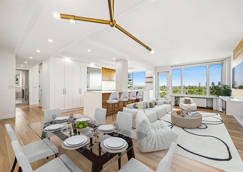 Mid-century modern designContemporary sophisticationCoswick hardwood floorsDimmable led lightingDesigner fixturesLutron controlsCustom quartz-topped radiator covers
