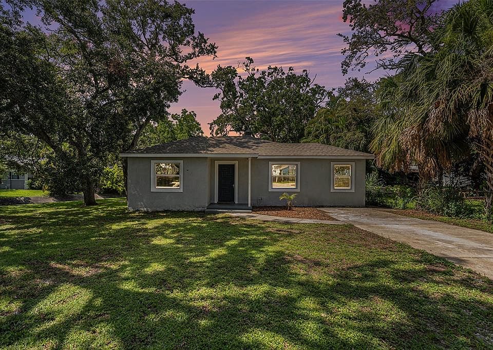 Discover this charming 3-bedroom, 1-bathroom home with an office, situated on over a quarter-acre lot in a great St. Pete location! Just minutes from US-19 and the Park/Gandy exit, you'll enjoy easy access to countless dining options, shopping centers, and zoned schools. This home features low-E windows and has been thoughtfully updated, including 2018 improvements such as interior and exterior paint, an updated kitchen, and a modernized bathroom. Additional updates include a 2019 water heater and 2017 A/C for peace of mind. The kitchen boasts stainless steel appliances, granite countertops, and plenty of cabinet space for storage. Stylish wood-look laminate flooring flows throughout the home, complemented by ceiling fans for year-round comfort. The spacious primary bedroom offers a walk-in closet, and the dedicated office space off the living room is perfect for remote work or hobbies. Step outside to a screened-in lanai and a large backyard - ideal for enjoying the Florida weather, grilling, or gardening. Plus, no flood insurance is required! Don’t miss this opportunity to own a move-in ready home with space, updates, and an unbeatable location. Schedule your showing today!
