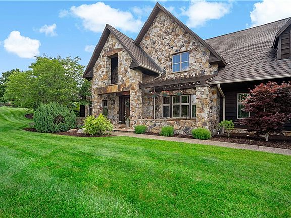 Exquisite 9,500 sqft. custom-built chalet spread over 1+ acre on desirable cul-de-sac in Jefferson Hills! A magnificently designed residence showcasing over 140 tons of mountain stone & cedar atop a lush & scenic property offered by original owners. Inviting grand entry leads to a soaring two story great room with monumental stone fireplace extending past the balconies to the vaulted ceiling. First Floor Master with stone fireplace & resort-quality en suite with sauna. The dazzling kitchen appointed with quality granite & stainless steel appliances shares a double sided stone fireplace with the sunken hearth room. The lanai, complete with hot tub, beautifully transitions indoor & outdoor entertaining spaces & overlooks the heated pool & private fenced-in yard. The grand interior boasts two additional BR suites, home offices, game rooms, and a home theatre. Valuable Exterior Features: Governor's Driveway, Sprinkler System, Oversized Garage & 50 Yr.Life Roof