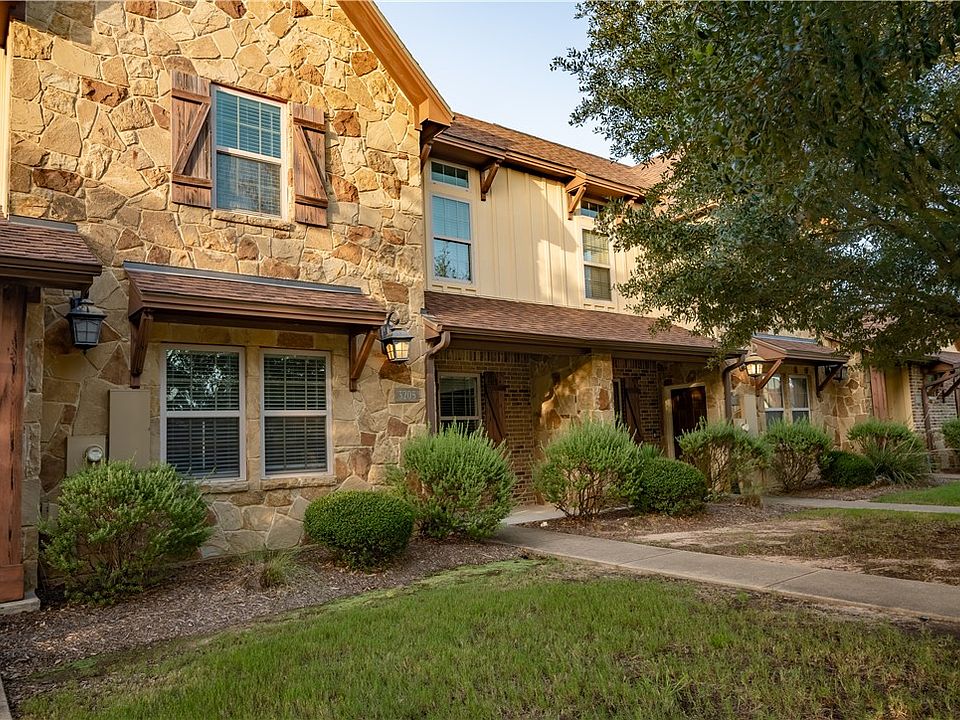 Located in the highly sought after community of The Barracks, this meticulously maintained 4 bedroom, 4 bathroom townhome offers comfort, style and convenience. Step into the spacious kitchen featuring granite countertops, stainless steel appliances, ample counter space/cabinets and an over-sized eating bar. Stained concrete flooring in the common areas and downstairs bedrooms with carpet in the upstairs bedrooms. Each bedroom features its own private en-suite bathroom. Freshly painted, new water heater, new bathroom hardware and new blinds throughout. Large, private backyard with patio. The incredible Barracks community provides resort-style amenities including a lazy river pool, fitness centers, game parks, gated dog park, sand volleyball, basketball, wakeboard park and the ever popular Cove at BearX! Minutes to Texas A&M University, restaurants and shopping. Make this incredible opportunity home for an Aggie, investor, or game-day retreat!
