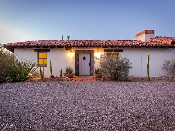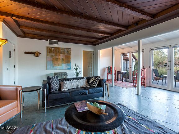 c.1949 Spanish Colonial on Expansive .83 Acre LotThis Spanish Colonial residence, built in 1949, embodies timeless Tucson character with its smooth plastered exterior walls and classic mortared mission tile roof. Set on a generous .83-acre lot, the property offers both privacy and room to breathe, with mature desert surroundings framing its architectural presence. Inside, the main house features three bedrooms and two bathrooms, highlighted by distinctive slate floors, open beams, and wood ceilings laid in an impressive herringbone design. A flagstone fireplace anchors the living space, adding warmth and texture to the dramatic interiors. Connected to the main home is a spacious guest suite with its own great room, bedroom, and bath--an ideal retreat for guests, extended family, or creative use as a studio or office.all conveniently located by shopping and restaurants downtown and the University of Arizona