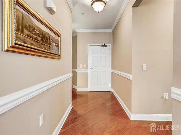 This beautiful end-unit, Harrington model is full of upgrades. Hardwood floors, decorative molding and premium finishes can be found throughout this immaculately maintained home. This home features 2 bedrooms, 2 full baths and both a large living room and den. The large primary bedroom features an en suite bath and two large walk-in closets with custom shelving. Most appliances are newer and the condo features a beautiful, neutral color scheme allowing its new owner to simply move right in. Premium shutters on all of the numerous windows and high ceilings throughout the home fill the space with tons of natural light. This home also features convenient, in-unit laundry. A patio off the living/dining room faces the woods, allowing a private space for outdoor relaxing. Plaza Grande at Old Bridge is an upscale 55+ community. It is privately located, yet conveniently close to shopping, dining and transportation. Amenities abound throughout Plaza Grande, including a clubhouse, pool, tennis courts, fitness center, and more. This unit's building features its own community library/game room and lounge. Social clubs and activities are available to residents. This home is truly special. Upscale and easy living awaits. Schedule an appointment to see it today!