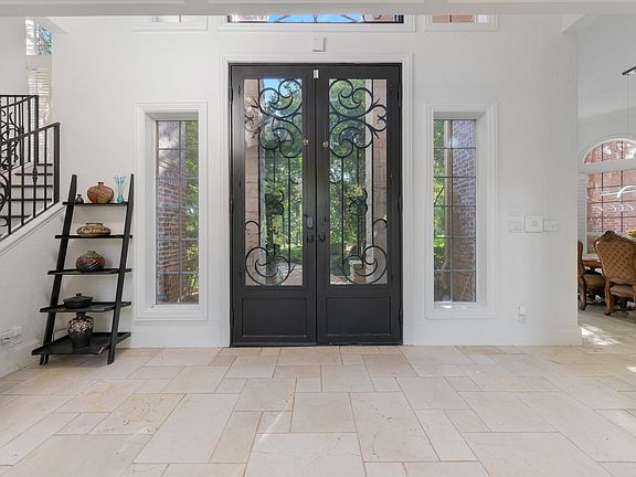 Featuring 4 bedrooms and 5 baths, soaring ceilings from 11’–24’, and abundant natural light, the interior is designed for both daily living and entertaining. The family room boasts a sleek modern fireplace and Turkish lighted shelves, while the formal living room includes a gas fireplace with views of the pool. The chef’s kitchen showcases Italian porcelain countertops, high-end appliances, and upgraded refrigerator and microwave. Two wet bars, one with a built-in wine fridge, add convenience. A luxury theater comes fully furnished with Sony 4K projector, Marantz processor, 9.3 speaker system, and wet bar. A professional gym with treadmill, weights, Echelon Mirror, bike, and rowing machine is also included.