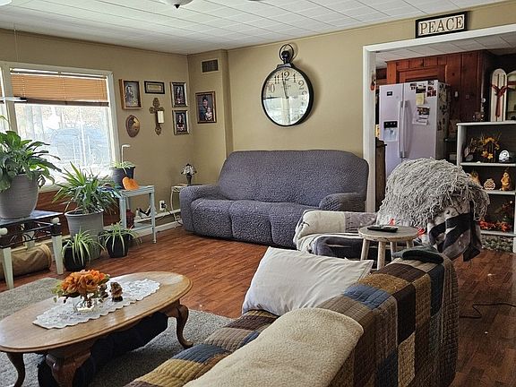 This 3 bedroom home features a split floor plan. Kitchen features a convenient cabinet layout with adjacent dining area. Large living room with plenty of natural light. Large utility room has lot of storage. This home sits on a wooded lot with mature trees. The 60 x 40 pole barn features 2 overhead doors - one on the north side and one on the west side for easy navigation. Pole barn is wired but not hooked up to electric. There is also a 20 x 20 block building for more storage. Plus a childs play house. Plenty of room for a garden or any outdoor activity. Entire yard is fenced! One block to Kankakee River Access. Property is not in the flood plain.