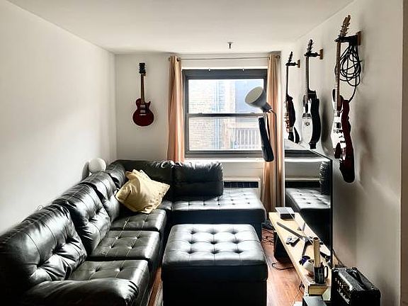 - Large sunny living room with hardwood floors, large windows, tons of sunlight.