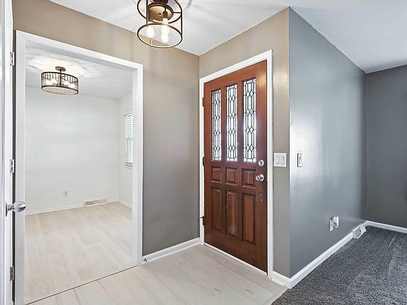 Check out this great 3 bedroom Ranch. This home has many things to offer with the eat-in kitchen, breakfast bar, pantry, and all appliances that stay. Off the kitchen you will find the great room with a wood burning fireplace flanked with a wood accent wall. The back yard boast a large patio, fenced yard and a nice sized shed. Finished basement with a large rec room, a full bath and loads of storage. The washer and dryer stay with the home as well. Updates include kitchen floor '25, carpet '22, refrigerator, dishwasher and washer '23, kitchen sink, faucet and disposal and light fixtures, roof, siding and gutters '23.