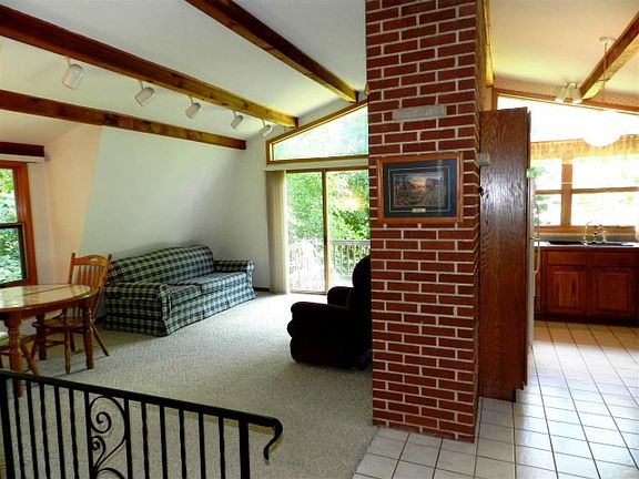 Where can you find a private, over an acre setting in the fastest developing area less than a mile to I-90 & I-94? This home is completely secluded by the wooded perimeter but still has much lawn space, big garage w/workshop & extra storage, 3 storage sheds, plant beds & fruit trees. Cute cottage style that was lightly lived in w/vaulted ceilings, fireplace, transom windows, slanted ceilings, interior brick & stone, Tile-kitchen, laundry & baths-Floors. Interior nicely connects exterior w/ big windows, screen porch & decks. Fresh paint & shampoo carpets. Laundry was 2nd kitchen. Selling As Is.