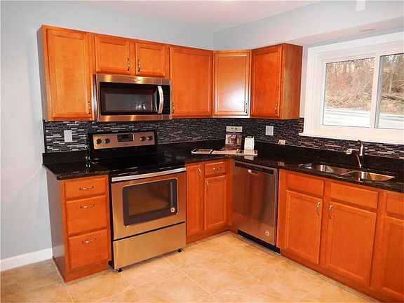 TOTALLY UPDATED TOP TO BOTTOM! This charming colonial style ranch home is move-in ready and sits on a 1.13 acre lot in Economy Borough minutes from major roadways and Cranberry Twp. Outside you will find new boulder retaining wall, new landscaping and a large driveway that will accommodate 3 cars with ease. The large one car garage has a new door and auto door opener. Plenty of room for a workbench and shop area. Greet guest at the new front door with oval decorative glass window. Inside you will find a whole house that has been freshly painted from top to bottom including the garage and basement! To the left you will find a large 26x12 living and dining room combo with cozy wood burning fireplace. Note the gleaming refinished hardwood floors. This will be the favorite gathering place with family and friends. A new decorative glass door leads to the large concrete deck with new vinyl railings with beautiful views over looking the expansive rear yard. Inside you will find a totally updated eat-in kitchen with new cabinetry, glass tile backsplash, ceramic tile floor, stainless steel double bowl sink, stainless steel microwave and dishwasher. Notice how light and bright the home is with all new windows and new recessed lighting thru out! Off the kitchen is the master bedroom and two additional bedrooms with fresh paint, new carpet and new lighting. New doors have also been installed thru out the home. On the main floor you will find a new full bath with single bowl vanity with storage, tub shower combo, new lighting and commode and ceramic tile flooring. Off the kitchen steps lead to the full walk-out basement that has been painted from top to bottom! Imagine the possibilities! Man cave, playroom, den or more! On this level you will also find a convenient new full bath with shower stall, ceramic tile floor, single bowl vanity with storage and new fixtures. The basement laundry area has built-in cabinetry with counter space for folding clothes. There's a laundry sink and hookups for a gas or electric dryer and washer. The new basement door with enclosed blinds leads to the rear yard. There is also a large storage area with new double door access. Other updates to the home include: new gas furnace, new central air, new air cleaner, new soffit and gutters. TO MANY UPDATES TO MENTION!
