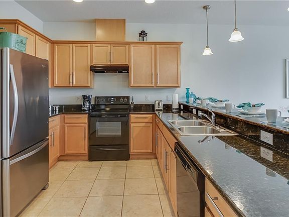 Welcome to this fully furnished 4 BEDROOMS and 3/1 Bathrooms home in one of Orlando's top family rental destinations. Located in spectacular gated community COMPASS BAY. The spacious 2 story layout provides open plan living, GRANITE COUNTER TOP, MEDIUM BROWN CABINETRY with stainless steel pull handles, all Whirlpool APPLIANCES, including microwave, range, dishwasher and a bottom freezer refrigerator. The living room at the rear of the home opens directly onto the spacious paver patio with a pond vue. The spacious master bedroom and three others are on the second floor. The garage can been converted to a game room for the futures home owners. COMPASS BAY offers fantastic amenities such as outdoor BBQ grills overlooking a small retention pond, a great community pool with pool cabanas and a 2 playgrounds! The Compass Bay are located approximately 0.6 miles to US Highway 192 which offers majors shops and restaurants.