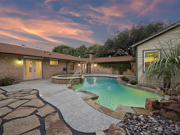 This meticulously maintained home in NW Dallas blends modern comfort and convenience with flexible living options for multi-gen living. The expansive living area features a stunning brick fireplace, vaulted ceiling and French doors leading to a backyard oasis. The open-concept kitchen is a true showpiece, featuring sleek quartz countertops, stainless steel appliances, stylish cabinetry and custom lighting. The spacious primary suite offers a cozy fireplace, direct access to the serene backyard and a spa-inspired ensuite bath with a luxurious body spray shower system and custom walk-in closet. Ample sized secondary bedrooms feature large closets and ceiling fans. Step outside to your private backyard retreat complete with a heated pool and spa, perfect for entertaining or relaxing year round. Additional highlights include recent gutters, front-to-back driveway and beautiful landscaping. A major bonus is the separate 600 sq ft detached building, fully equipped with heating and AC - ideal as a workshop, home office, rental unit, or private guest quarters. Recent updates include AC (2017), Roof (2021), water heater (2024), and pool pump (2025). Located in a quiet, family-friendly neighborhood just minutes from parks, shopping, major highways, and both DFW and Love Field airports, this home offers comfort, convenience, and exceptional versatility.