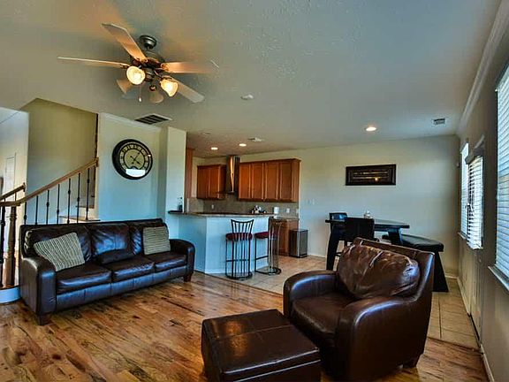 Wonderful 2-story 3/2.5/2 townhome on a cul-de-sac lot, in a convenient 288 & Beltway located community! Open 1st floor living space w/ gorgeous wood-laminate flooring throughout home. Large primary bedroom suite with 2-sink bathroom. Spacious backyard space w/ covered patio, storage shed and no back neighbors...great for outdoor entertainment! Refrigerator included and stainless steel appliances in kitchen! Extra nook on second floor for extra work or decorating space. Great 2-car driveway for additional parking space! Easy accessibility to The Medical Center, Downtown, Beltway 8, 288, Hobby Airport, and to plentiful shopping & dining options in Pearland. Schedule a visit today!