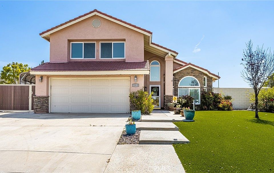 Welcome to 32055 Merlot Court, a beautiful 2-story view home sitting at the end of a quiet cul de sac, with oversized yard, covered RV parking, saltwater Pool & Spa, custom covered patio with built in bar, and spectacular views of the Hot Air Balloons and Mt Palomar beyond. Located just blocks from Temecula Wine Country in The Vineyards, a desirable community with no HOA fees, this updated home is perfect for the growing family or multi-generational living, with 2 primary suites, one on each level, 3 1/2 updated bathrooms, 4 total bedrooms, laundry room, and built-in 2 Car Garage. Interior features include an open concept main level, chef's kitchen with granite countertops, custom cabinetry, Z-Line commercial range, and walk-in pantry, family room with custom fireplace, large open dining area, and separate living room with plantation shutters, letting in the natural light, including beautiful sunsets. Upstairs you have 3 bedrooms and 2 bathrooms, 1 en-suite with separate tub and shower, dual vanities, and ceiling fans in all bedrooms. Tankless water heater, 2 separate home solar systems save you hundreds each month (total monthly payment of $264.51), newer paver patios, 2 storage sheds, 1 to house all the pool equipment, and a fully covered gated RV parking that can fit up to a 40' RV. This home is perfect for entertaining, and you'll never tire of watching hot air balloons as the sun rises in your own private oasis. Conveniently located near the Wineries, shopping, freeways, golf courses, and fine dining, this home is perfect for you.