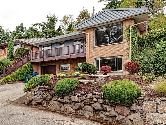 Welcome to a beautiful mid-century brick home located on the West Slope of Queen Anne. You'll appreciate the low-traffic dead-end street access, private fenced back yard & views of Sunsets over the Sound from the large living room window. Features include 4 bedrooms, 1.75 updated baths, refinished hardwoods, updated kitchen, new carpets, fresh interior & exterior paint, wood fireplace, attached garage and a large bonus room or 5th bedroom. Move in ready or perfect rental opportunity.