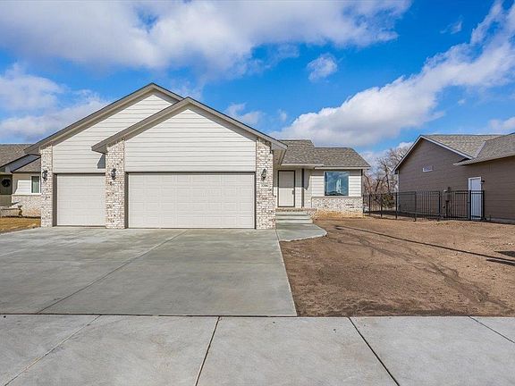 BACK ON THE MARKET due to a buyer financing issue! Come take a look at this BRAND NEW, Aiden floor plan on a LAKE LOT in Meadowlake Beach! DERBY SCHOOLS with lower, Wichita taxes! Just minutes from Derby, Wichita, and McConnell AFB, this open floor plan includes vaulted ceilings, luxury vinyl plank throughout the main living areas, and beautiful views of the lake behind the home! The kitchen features quartz countertops, an island with storage space and an eating bar, and staggered cabinets with crown molding. The master bedroom has a vaulted ceiling and two large closets, and the master bath features a shower and quartz countertops. The fully finished daylight basement boasts luxury vinyl plank flooring in the rec room, a 3rd bedroom with an enormous closet, and a 3rd bath, and the furnace is equipped with a humidifier! An oversized patio sits behind the home for enjoying the outdoors and a beautiful view of the lake. Make this home yours SOON!