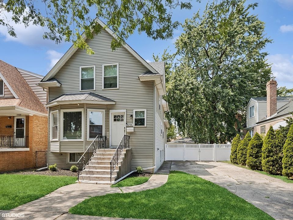 Discover the perfect blend of vintage character and thoughtful updates in this 1911 classic two-story home, ideally located in the heart of Berwyn. Just a short stroll to the Metra station, coffee shops, restaurants, and all the local favorites that make Berwyn such a vibrant community, this home offers unmatched convenience for commuters and neighborhood explorers alike. Step through the charming front entry and you're welcomed by the warmth of gleaming hardwood floors, high ceilings, and sun-filled living spaces that reflect the craftsmanship of a bygone era. The main level is designed for both comfort and flexibility, featuring a spacious living room, a separate dining room for hosting memorable gatherings, and an updated kitchen with modern shaker cabinetry, ample granite counter space, and a layout that makes cooking a joy. For added versatility, the main floor also offers a bedroom and full bath which is perfect for guests, a home office, or a master bedroom. Upstairs, you'll find three generously sized bedrooms with plenty of natural light and original charm, served by a full bathroom. The full basement adds valuable storage space and future finishing potential, whether you envision a rec room, workshop, or home gym. Set on an oversized lot, the backyard is a true retreat with a deck and added gazebo. Fully fenced for privacy, with space to garden, entertain, or simply relax on sunny afternoons. A detached 2-car garage provides secure parking and additional storage. With its unbeatable location, classic details, and thoughtful updates, this home is more than just a place to live.