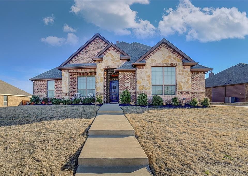 BEAUTIFUL GLACIER CUSTOM HOME located in desirable Lawson Farms - highly acclaimed Schools across street from POOL & amenity center. Home features open floorplan, hand scraped wood floors, gourmet kitchen with granite, large island & custom cabinets. Large family room & bedrooms. Sitting area in master. Study with beautiful glass panel doors (can also be a 4th bedroom!). Giant gameroom upstairs with sitting area & balcony access. Large backyard with covered patio, full sprinkler system front and back. Front yard features charming porch , fresh landscaping, beautiful brick & stone combination. Walking distance to community pond & Midlothian Community Park. Ping Pong table included with sale of home.