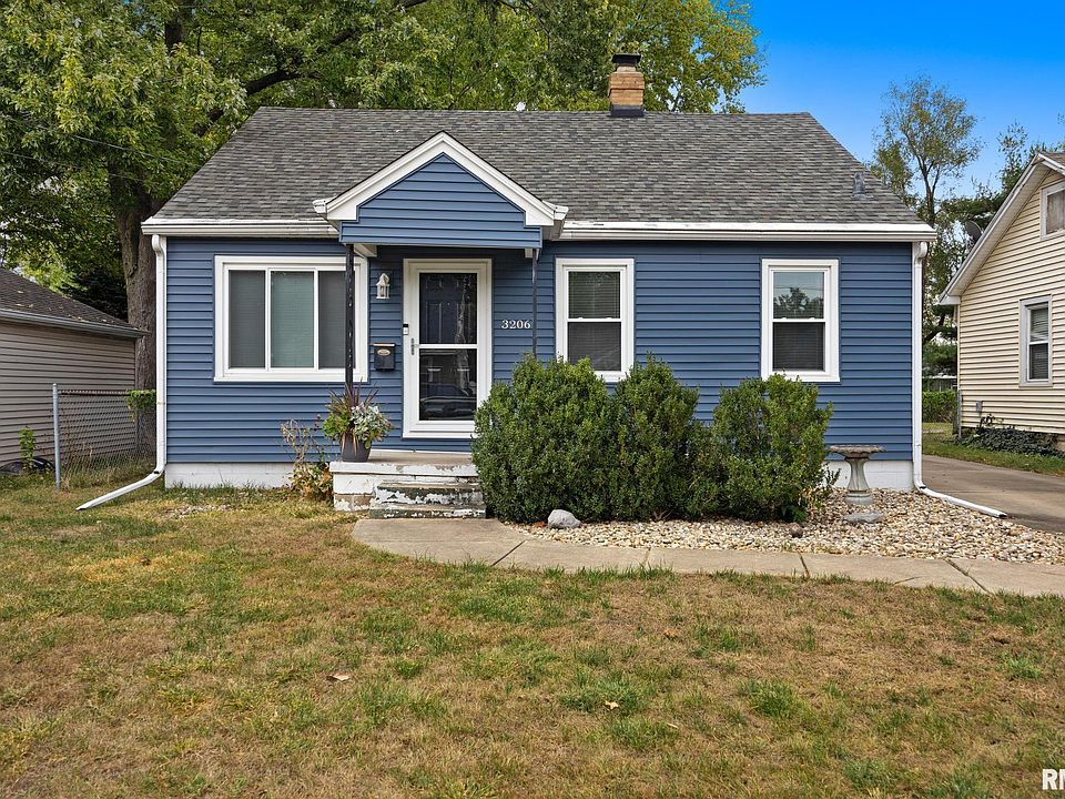 Adorable 1.5 story home with 3 bedrooms, 1 bath, and a 1-car detached garage! Move-in ready with charming original hardwood floors in the living room and primary bedroom. The kitchen, open to the informal dining area, includes appliances that stay. Spacious upper level makes a perfect 3rd bedroom, hobby room, or workspace. Full basement offers great potential for finishing. Updates include water heater, windows, siding & doors (2022), roof (2016), and garage door opener (2025). Enjoy a large backyard—great for relaxing or entertaining! Don't miss this well-maintained gem!
