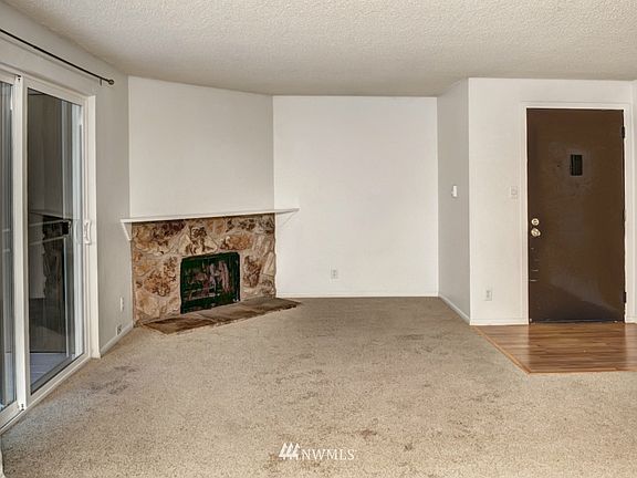 Desirable low maintenance 2 bedroom/1 bath one-level condo w/ NO STAIRS to front door in E. Bremerton! Enter to spacious living room w/ fireplace & private balcony overlooking greenbelt. New carpet & paint throughout. Move-in ready. Close to PSNS, shopping & ferry (perfect for 1st time home buyer or investor). VA eligible.
