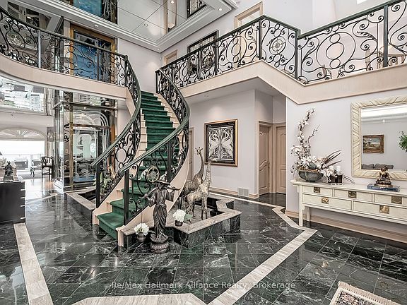Crafted as the personal residence of a renowned designer, this 5+1 bedroom, 10,000+ sq.ft. waterfront estate is a rare offering in one of Bronte's most coveted settings. While neighbouring homes were also designed by him, none compare to the scale, craftsmanship, and artistry dedicated to this residence-his own masterpiece.Expansive windows and soaring ceilings flood the home with natural light, framing breathtaking lake views on every level. Multiple balconies and terraces offer front-row views of sunrises, sunsets, and moonlit water-creating a seamless connection to nature from morning to night.Thoughtfully designed for both family living and elegant entertaining, the main level features grand principal rooms, multiple gas fireplaces, formal and informal living spaces, and a gourmet kitchen with walkout to the lakeside terrace. Each level offers outdoor retreats - private balconies off bedrooms, and expansive terraces perfect for gatherings.The upper level includes generously sized bedrooms, including a luxurious primary suite with private balcony, spa-like ensuite, and unobstructed views of the lake. A full lower level adds an additional bedroom, recreation spaces, gym, and walkout access.Set on a quiet street with a strong sense of community, this home offers a rare blend of privacy and connection. The saltwater pool, manicured grounds, and lakeside setting make every day feel like a peaceful escape.Minutes to Bronte Harbour, boutique shops, trails, parks, and top-rated schools-this residence is more than a home; it is a lifestyle on the water.