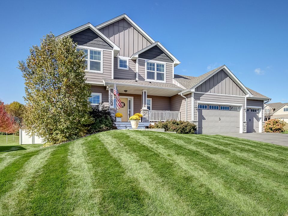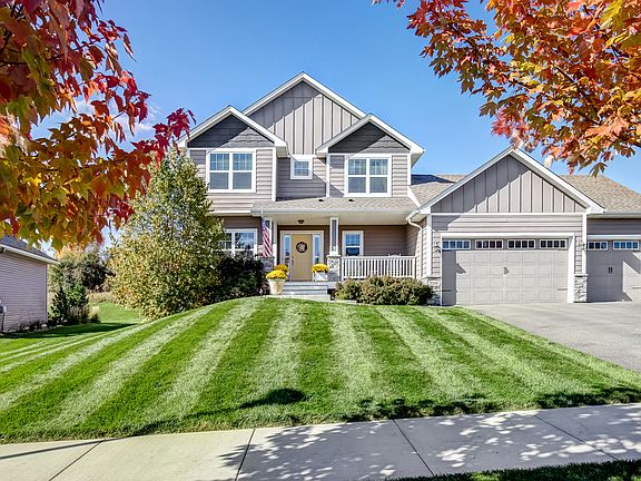 Welcome to this stunning two-story home in Symphony Hills! This immaculate home boasts 3,417 sqft, 5 beds, 4 baths, 3 car garage and is on a cul de sac. Walk right in and be greeted by the hardwood floors and open concept. The large windows and patio door fill the main level with natural light. You will love the kitchen offering a center island with marble countertops, white shaker-style cabinets and a walk-in pantry! Just steps away is the informal dining room and a walkout to the brick paver patio. Head upstairs and you wonât miss the stately chandelier that lights the way to four bedrooms on one level including the ownerâs suite. Enter through the french doors to the spacious suite with a private ensuite featuring dual vanities, separate tub/shower and a walk-through closet. The lower level features a large family room with a wet-bar and an additional bedroom. Convenient location to shopping, dining and recreation. Easy access to HWY 212 and MN-5. Do not miss your opportunity!