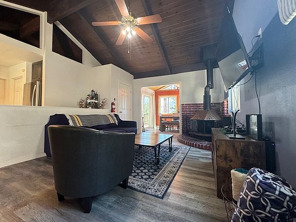 This Charming 4-Bedroom 2-Bath home is within walking distance to downtown Running Springs, Providing Easy Access to local shops and restaurants. You can enjoy unobstructed views of the San Bernardino National Forest from the back deck, creating a serene atmosphere. The property is located just 6 miles from skiing opportunities in the winter and biking trails in the summer. Additionally, it's a short 30-minute drive to Big Bear and 15-minute drive to Lake Arrowhead. Modern conforts are provided, including EV charger for an electric vehicle.