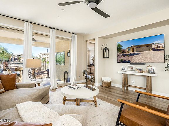 Functionality shines throughout the home with a truly oversized multipurpose laundry/utility room offering custom cabinetry, working countertop, and a built-in washer/dryer area. Additional upgrades include an RO system, soft water system, pre-wire for surround sound, and custom garage storage with doors. The epoxy-coated garage also includes a utility door and a 220V outlet for car charging.