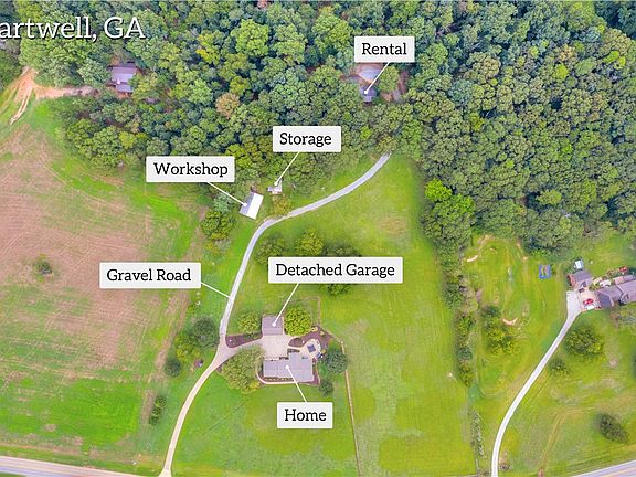 Room to roam! Your own 7 acre spread very near to the city of Hartwell. Renovated 3/2 brick ranch with beautiful landscaping, a separate Carriage house with 2 car garage and climate controlled 2nd story man cave, a 24X36 shop and a 20X24 shop. There is a nice 2/1 mobile home with brand new HVAC and water heater in the back of the property with a family room addition and it's own storage shed... Hello RENTAL INCOME! The kitchen boasts new quartz countertops, sink and faucet and recently added stainless appliances. The great room has been added and a new roof plus other countless additions and upgrades. With privacy galore and beautiful landscaping, welcome to a more relaxed lifestyle on a beautiful property.