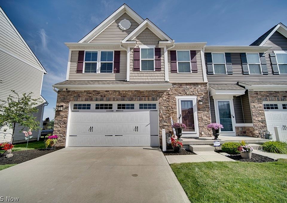 Welcome home to this beautifully maintained and cared for end unit Townhome in desirable Brunswick CSD. As you walk in the foyer you will find gorgeous hardwood floors and a half bath. The living room has a freshly painted accent wall with hardwood floors throughout. The open concept boosts a large granite kitchen island with top of the line cabinetry and a new backsplash. The dining room leads you to the sliding glass doors that step down onto a stamped patio, less than 2 years old. Upstairs you will find a large master bedroom with two walk in closets. The master bath has ceramic flooring, granite countertops and updated ceramic tiled shower. This level also has two additional bedrooms with excellent closet space and a sitting area. All of the carpeting is higher end grade than a standard new build. All the beautiful upgraded blinds will stay. The lower level has egress windows for your safety with alarms on them. The finished living space is cozy with plenty of sunlight and a perfect in-law suite. The bedroom on this level has egress window next to a full bathroom and closet. There is more, this level also has additional storage and a gas water tank. The storage racks will stay in the finished garage that has its own water spicket. This is the only home in Enclave at Autumn Creek that has 4 bedrooms, large yard with a stunning view and extra long driveway. Call to schedule today.