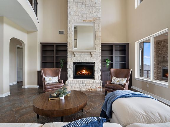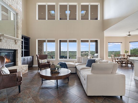 Welcome to 3207 Crystal Falls Parkway, a rare gem in the prestigious, gated golf course community of Grand Mesa at Crystal Falls in Leander. This custom-built residence sits on over 2 wooded acres and offers panoramic 360-degree views of the Hill Country and distant golf course—captured from nearly every room, including all bedrooms, living areas, multiple covered patios, an expansive wrap-around porch, and a skylit upper balcony. Ideally located near top-rated schools, shopping, dining, and Hwy 183, this home blends privacy with convenience. Thoughtfully designed for both comfort and entertaining, the open-concept interior showcases soaring ceilings, abundant natural light, and seamless flow between the spacious living and dining areas. The gourmet kitchen features stainless steel appliances (including a new gas stove), generous cabinetry, and a breakfast bar ideal for casual dining. A built-in movie theater system and fiber Ethernet connection add high-tech convenience and enjoyment. The main level features a luxurious primary suite with a spa-like bath and sweeping views. An adjacent flex room easily converts to a guest room, media space, or multi-generational suite—perfect for elderly parents or visitors. Upstairs, additional bedroom suites offer private baths, walk-in closets, and oversized windows capturing the landscape from every angle. Arrive to a new sandstone retaining wall, custom landscaping, and a long private driveway leading to an elevated homesite with a brand-new roof (both installed in 2023 with warranties). Step outside to enjoy multiple outdoor living spaces, including a lower-level covered patio with a built-in gas grill and outdoor fireplace—ideal for year-round entertaining. The east-facing orientation fills the home with soft morning light and showcases unforgettable sunset views. With over 2 acres, there's room to build a custom pool and create your dream outdoor retreat.