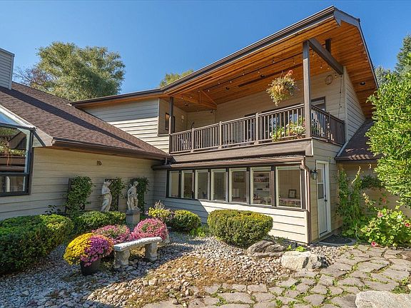 One-of-a-kind luxury riverfront estate. This property is designed for both comfort and entertainment. Enter through a charming courtyard with a wrought-iron gate and waterfall feature into a home of vaulted ceilings, rich wood finishes, and a grand staircase. Featuring 4 bedrooms, 3 baths, a den, and open concept living with a sunroom showcasing panoramic river views. The gourmet kitchen offers beautiful custom cabinetry, premium appliances, large island, and wet bar. Also, boasting a seven-car garage for kayaks and all the toys. Outdoors, manicured lawns flow to the river’s edge, complete with gazebo, private putting green, seasonal floating dock, and wildlife watching—eagles, moose, and river otters are regular visitors. A rare blend of elegance, recreation, and natural beauty—this extraordinary property is truly magical.