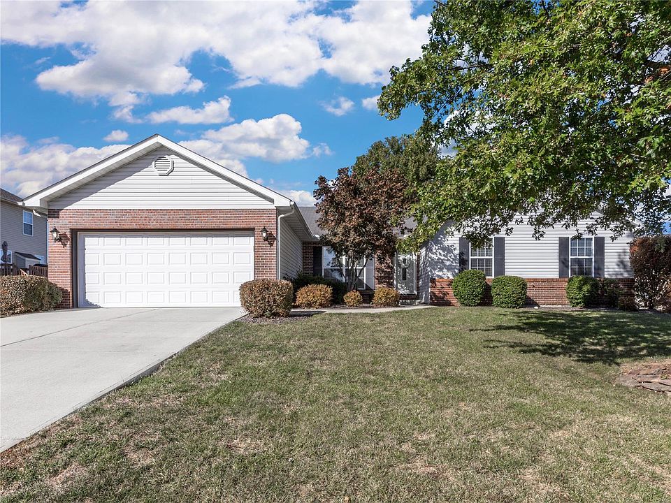 Beautiful, well maintained 3 bedroom ranch w/full basement on cul-de-sac! Light & airy open floorplan. Welcoming entry w/coat closet draws you into the living room w/vaulted ceiling & cozy gas fireplace perfect for those chilly days & nights. Right off the entry is the dining room w/hardwood floors & could be used as office/playroom/sitting rm. Large eat-in kitchen has granite counter tops, breakfast bar & incl all appliances. You'll be wowed by the private primary suite w/accented wood flooring, crown molding, HUGE walk in closet plus its own private bath w/dual bowl vanity & large walk-in shower. Full basement has a finished family/rec room, bonus room & plenty of storage! Laundry room incl washer/dryer & storage shelving. Love to spend time outdoors, the backyard deck & patio have plenty of space to relax & unwind, enjoy parties/BBQ's or entertain. Vinyl privacy fence encloses the backyard. Shiloh occupancy compliant. Convenient location to Scott AFB, shopping, dining & MORE!