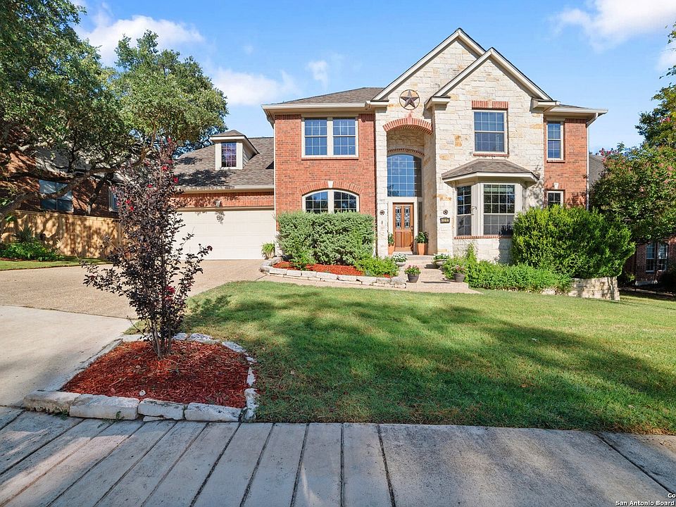 Stunning 4-Bedroom Home in Exclusive Gated Community - The Preserve at Alamo Ranch. Welcome to this beautifully maintained 4-bedroom, 3.5-bathroom home in the prestigious gated community of The Preserve at Alamo Ranch. With 3,395 sq ft of thoughtfully designed living space, this home offers the perfect blend of comfort, elegance, and functionality. Situated on nearly a quarter-acre lot (0.238 acres), the home boasts incredible curb appeal with fresh sod, professional landscaping, and charming stone-and-brick masonry on all four sides. The backyard is a private retreat, shaded by majestic mature oak trees and complete with a spacious wooden deck and relaxing jacuzzi hot tub-ideal for unwinding or entertaining. Inside, you'll find a spacious and light-filled floor plan featuring a main-floor primary suite, a formal dining room, a dedicated home office, and a cozy gas fireplace in the living area as well as it being pre-wired for home theater/sound system and recently installed carpet in February of this year. Natural light pours in from every angle, enhancing the warmth and character of each space. The chef's kitchen flows seamlessly into the living area, and the layout is perfect for both quiet evenings and lively gatherings. Additional highlights include a 3-car tandem garage, elegant finishes, and tons of storage space! Enjoy the privacy and security of living in one of Alamo Ranch's most sought-after gated communities, with convenient access to top-rated schools, shopping, dining, and major highways.