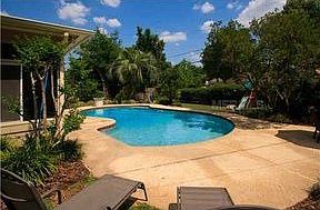 Lovely 1 story pool home surrounded by oak trees in very desirable subdivision on quiet street. Open floor plan w/ lots of windows, hardwood floors, built-ins, fireplace. Spacious sun/bonus rm with brick floors opens out to patio, pool & large backyard. All white kitchen with Mexican tile floors, built-in desk / china wall and large window over the sink just brings in the sun. Ample dining room accommodates just about any size furniture. Wonderful setting for entertaining both small family gatherings and big party events - this home flows! Deep lot provides plenty of backyard for play or gardening and room to add on if desired. Surrounded by beautiful stately homes, this property is not a short sale, but is the bargain!