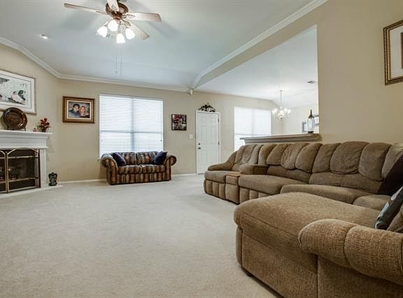 Immaculate and move-in ready this spacious 1 story home features 3 year old roof, extra attic ventilation, solar screens, new garage door with opener, plus exterior soffit lighting. Open plan has large living with gas fireplace, crown molding & ceiling fan. Cooks delight Kitchen has tons or counter and cabinet space, tile back splash, breakfast bar and HUGE walk-in 2nd pantry! Across from Park and playground. Zoned to Hawk, Crownover and Guyer schools with easy access to retail, shopping and entertainment!