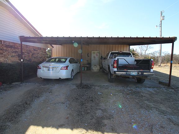 There is an insulated shop building that is 30x50 with an office and bathroom setup for a small business. Pole barn with 2 sections. 2 out buildings for storage. Well water. New carpet, tile, and newly installed hardwood laminate floors. White vinyl fence. 10 acres with a pond, 2 car carport, solar powered electric gate, coral for horses, circle asphalt drive recently resealed. Inside recently painted. Covered rv pad with hookups. Metal roof. Trane a/c and heating unit installed 4 years ago. New dual pane windows that pull in to clean installed 8 years ago and new vinyl siding installed 8 years ago. This acreage sets back off the highway and is about 5 miles from Lake Murray and about 35 miles from Lake Texoma! It is country living, but within city limits! Call for more information!